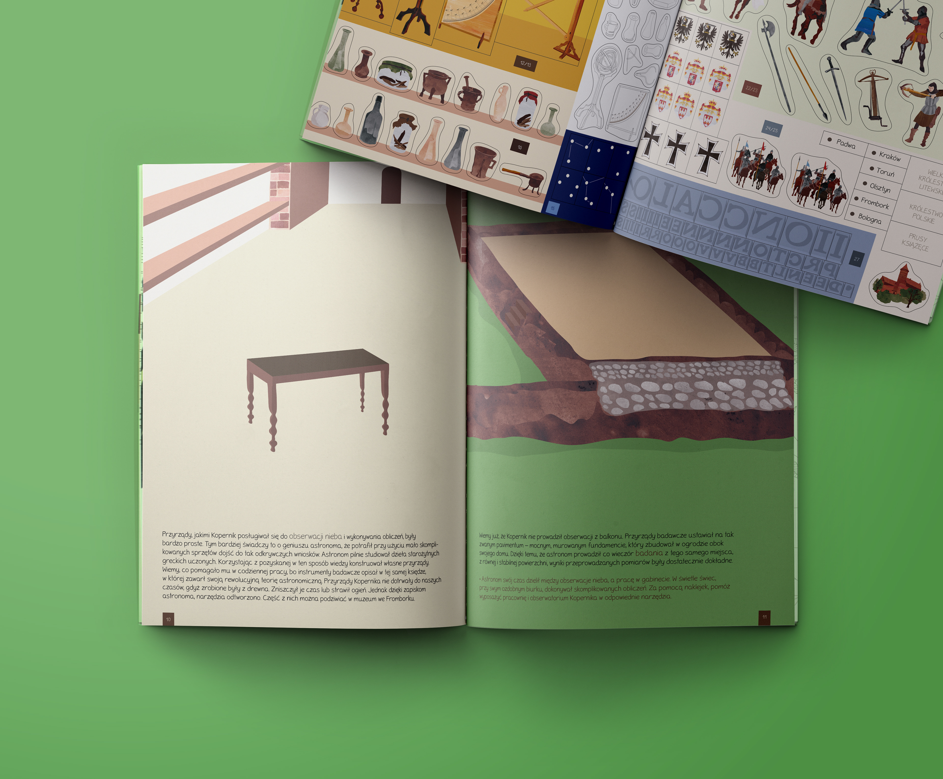 Idol Nicolas Copernicus, an illustrated book for young readers with stickers and activities.