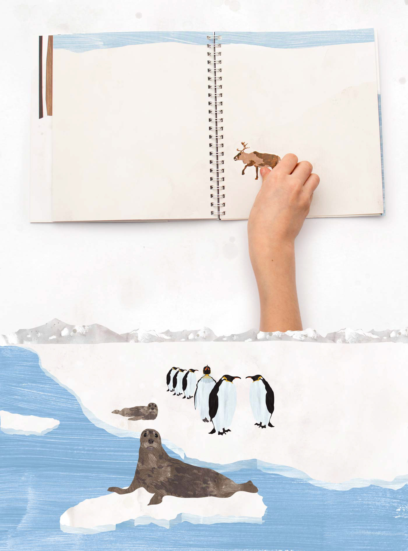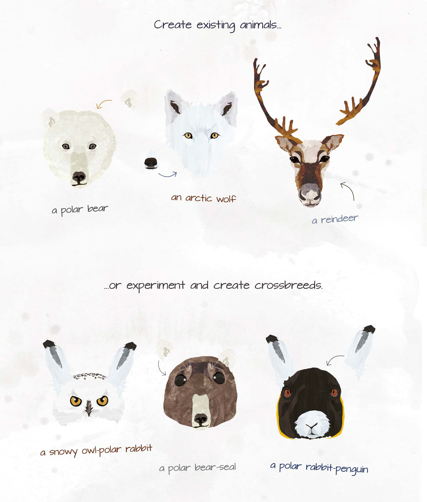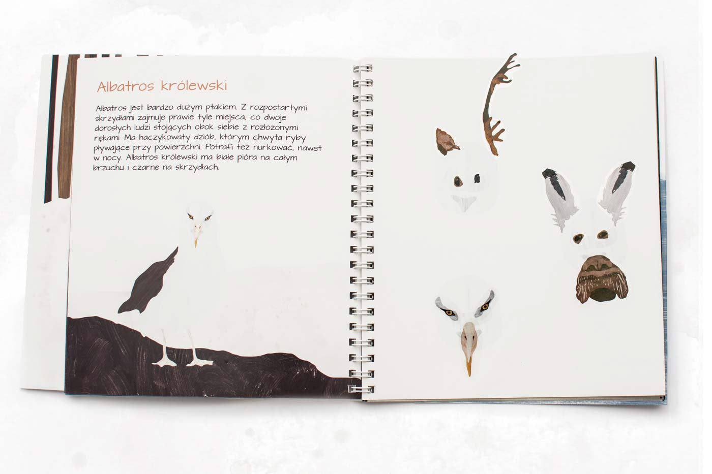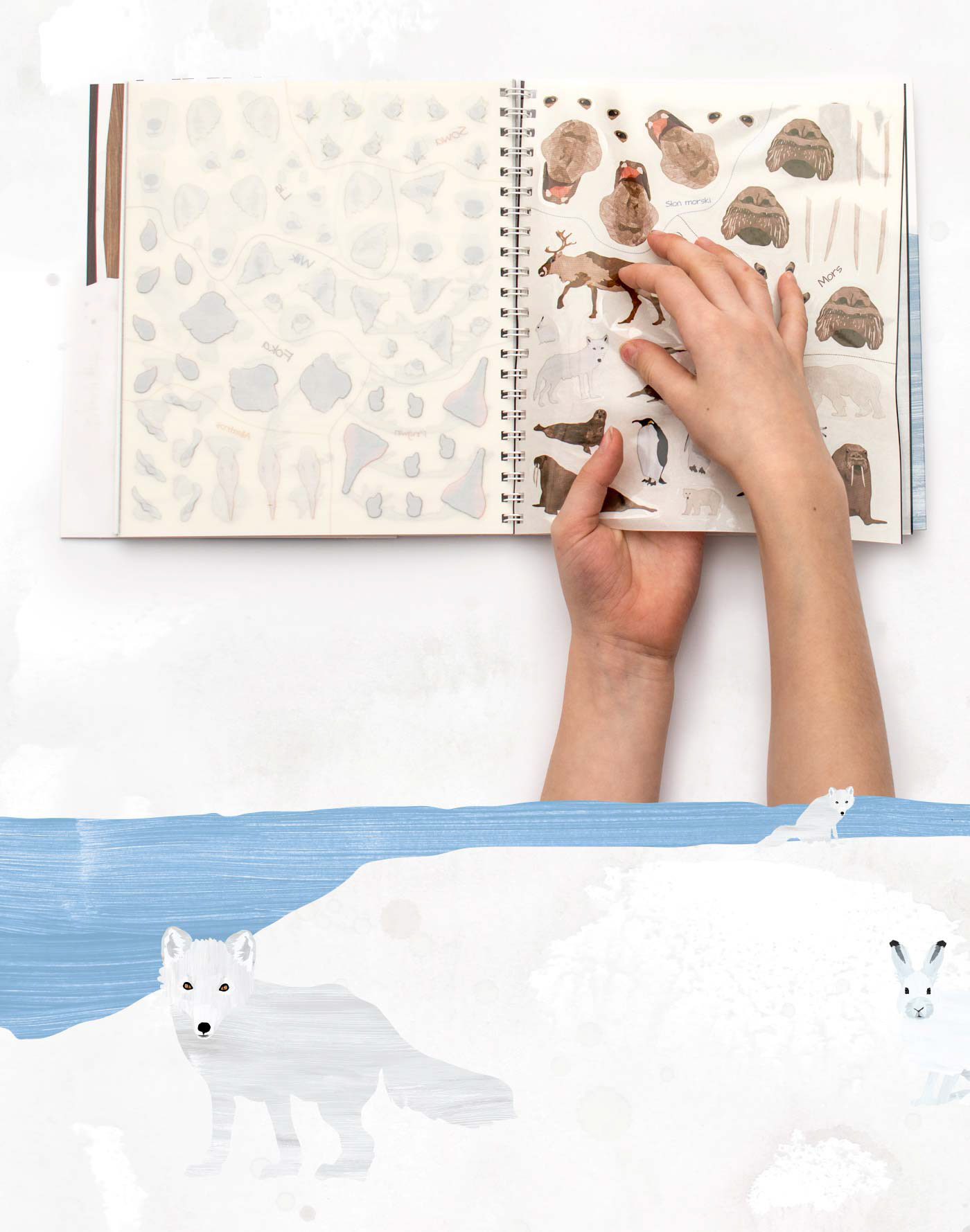 The Poles – and their un/common inhabitants. The second one of a series of books with multiple-use stickers, stickers that are artistically refined and not pink or glittery, that can be used to raise creativity and educate. Suitable for boys and girls. Friendly towards the youngest readers – small size perfectly fitting children’s hands. After meeting the residents of the Arctic and the Antarctic, the young child may create his or her own world, sticking animals on the prepared background. Children have a chance to spread the wings of their imagination, to experiment and to create crossbreeds – for example an owl with a wolf – using stickers representing different parts of animals’ body (eyes, ears, noses or muzzles). Published by Wydawnictwo Widnokrąg
